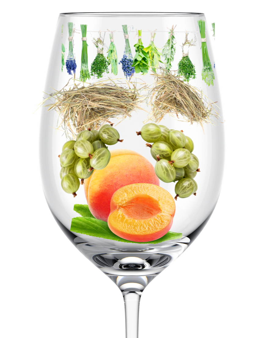 ワインは黄金色で、ドライハーブとグレープフルーツ、胡椒、干し草のアロマ。味わいはとても心地よくジューシーで、バター・ペアとホワイト・ペッパーのニュアンスがある。トーストしたホワイトアーモンドの軽いスパイシーさが心地よい余韻を添える。